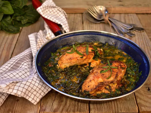 Пилешко със спанак и сос от бяло вино