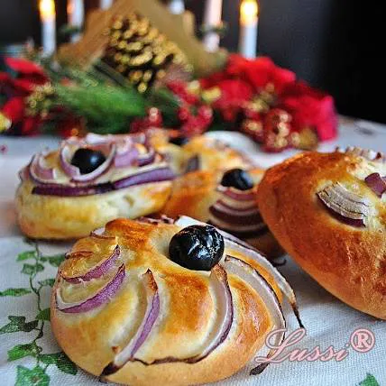 Питки "Цвете" с червен лук и маслини