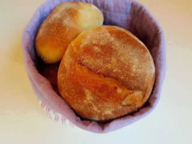 Интересно е печенето на питките. Изваждат се веднага от плика, и се увиват в кърпа ако ги искате мекички. Ако ги искате хрупкави махнете плика след като са се надули и напукали