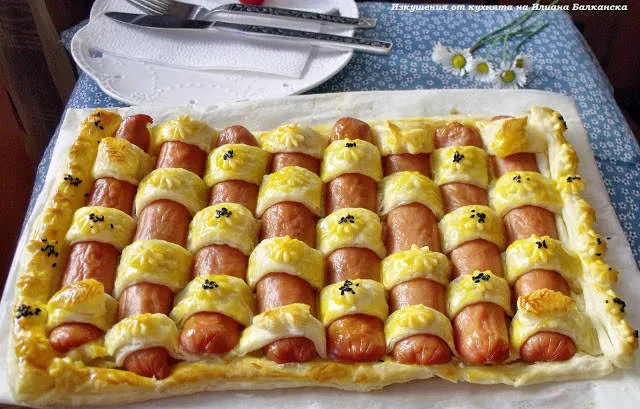 Плетеница от бутер тесто и кренвирши