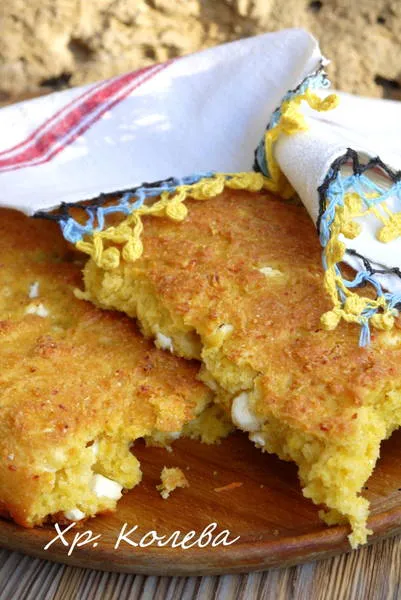 Плоска бъркана питка с царевично брашно