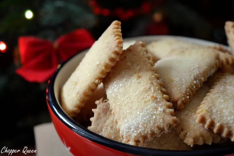 Наръсват се със захар, нареждат се в тава, застлана с хартия за печене и се пекат в предварително загрятата фурна около 20 минути, до златисто
