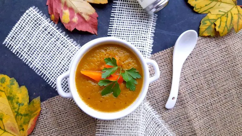 Постна крем супа от печена тиква с авокадо и магданоз