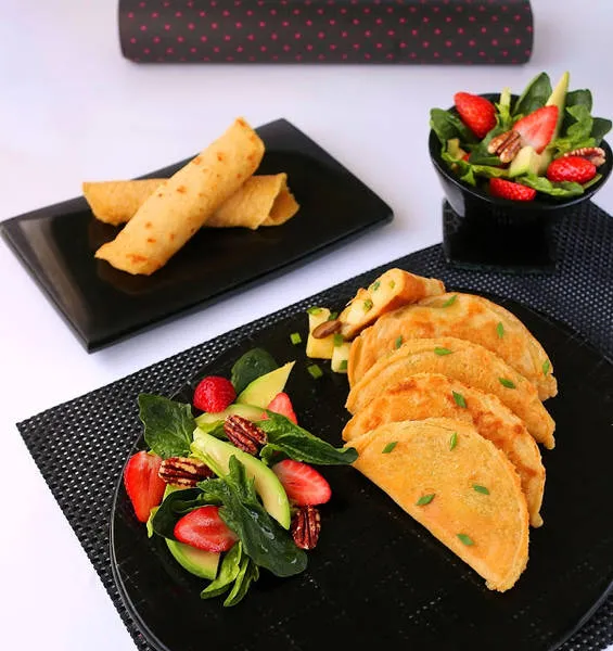 Сервират се топли със сос и/или свежа салата. Сервират се топли със сос и/или свежа салата. Нахутеното брашно е без глутен, спухкава, фино смляна структура и с много ползи за здраве