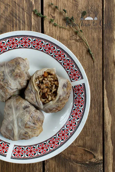 Постни зелеви сарми с кафяв ориз и сушени гъби