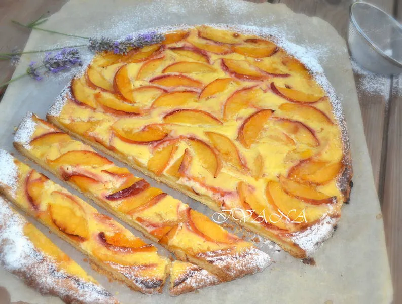 Хрупкаво маслено тесто с нежен крем и праскови!