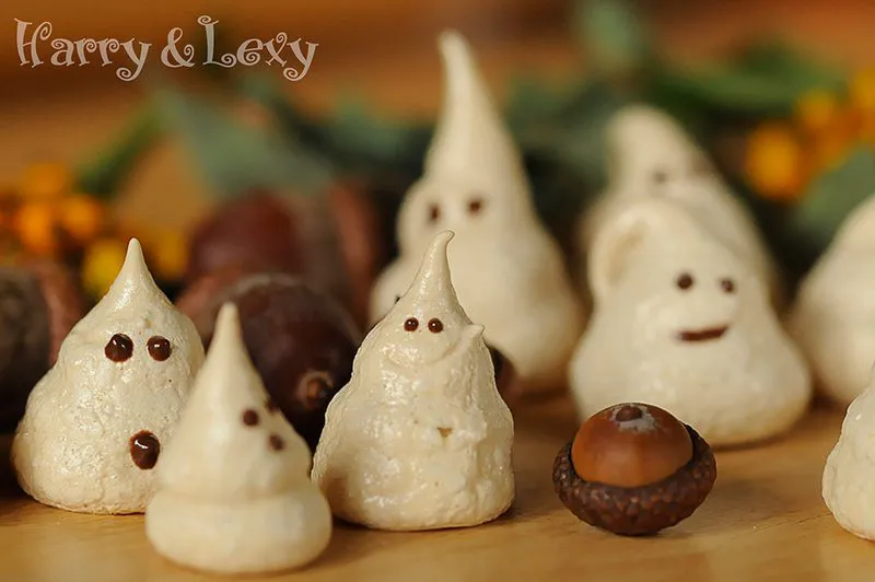 За тези от вас, които също харесват празника или пък нямат нищо против да се поглезят с някое лакомство, ви предлагаме една изключително лесна и много закачлива рецепта – призрачни целувки или пък целувки призраци (както повече ви харесва). Може да си ги хапвате просто така, да украсите някоя торта или да ги поставите върху къпкейкове – приложения много и всичките са чудесни.
