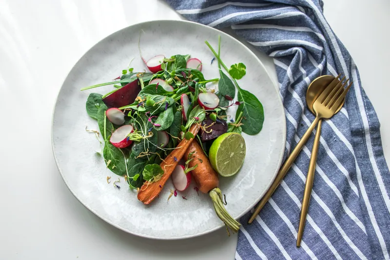 Спаначена салата с репички и джинджифилов дресинг