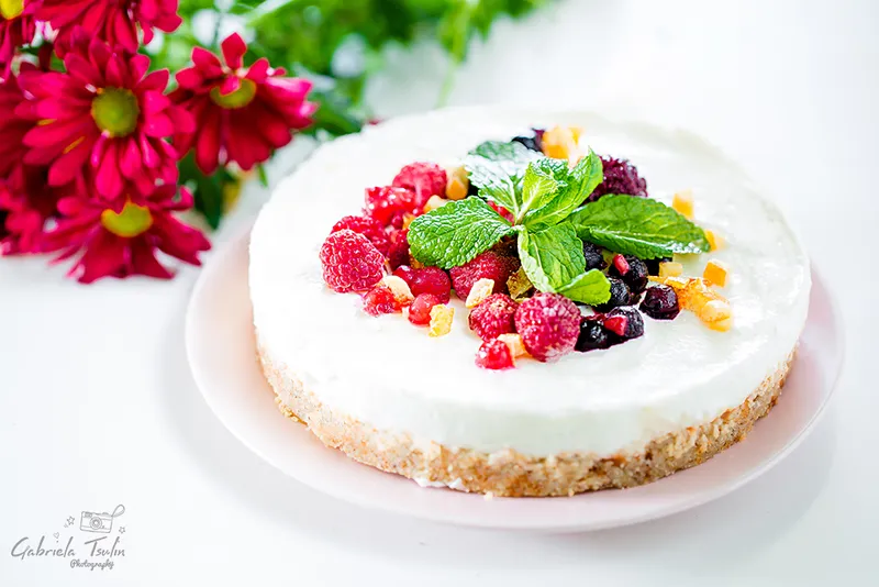 Протеинов чийзкейк с горски плодове и привкус на портокал