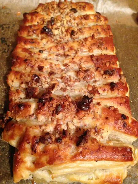 Изключително лесен десерт, който могат да приготвят дори и малките деца. Бутер тесто, шоколад, яйце и ядки - това е всичко, което ви е нужно. След по-малко от половин час имате истинска калорийна бомба!
