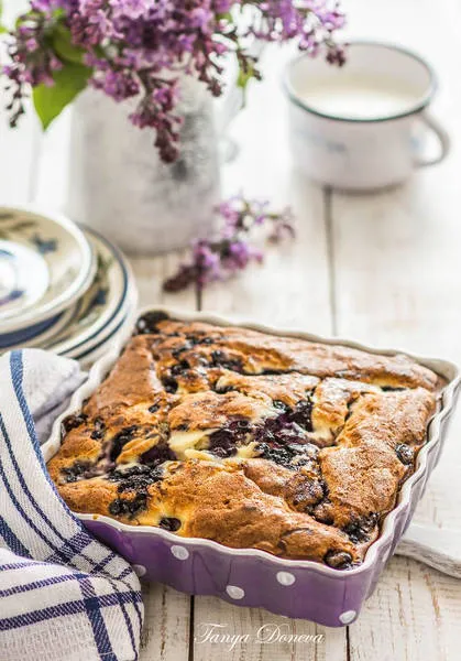 Пухкав сладкиш с боровинки и лимонов кварк слой