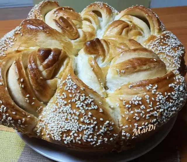 Пухкава пита с масло, заквасена сметана и сусам