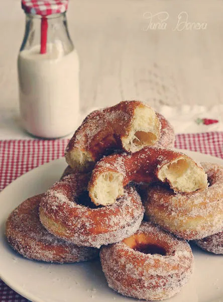 Докато са още топли оваляйте поничките в карамелено–ваниловата захар и сервирайте веднага.