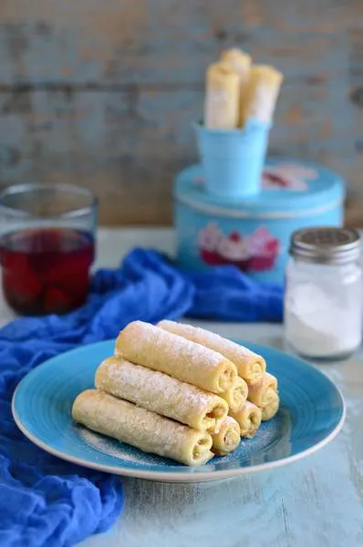 Рецепта от Татарската кухня. Поръсете пуричките с орехова плънка с пудра захар, докато са още топли и сервирайте.