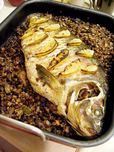 Преди не уважавахме много тази риба, но последните години за Никулден винаги присъства на масата ни. Правила съм с различни пълнежи, но приготвен по тази, последната рецепта, много се хареса