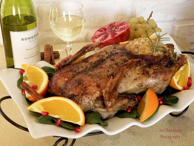 Пълнена Пекинска патица с ориз, канела и сушени плодове
