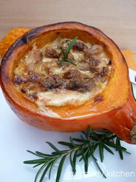 Пълнена тиква Хокайдо с пиле, манатарки и сметана