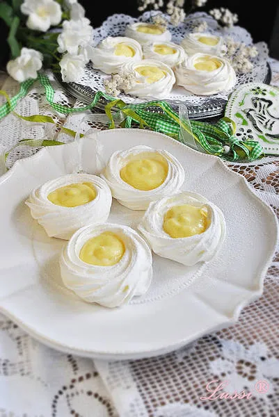 Напълно в духа на Великден, наподобяват на яйца на очи, а комбинацията на сладката, хрупкава коричка на меренгето, и с пълнежа от вкусен крем, може да ви накара да възкликнете от почуда.