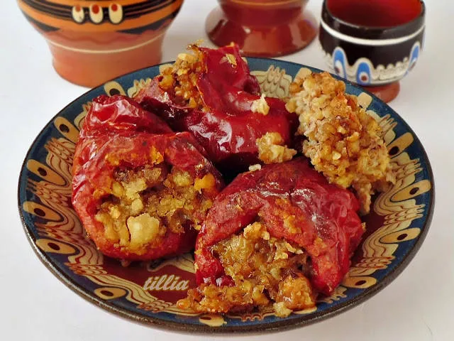 Пълнени сушени чушки с ориз и орехи