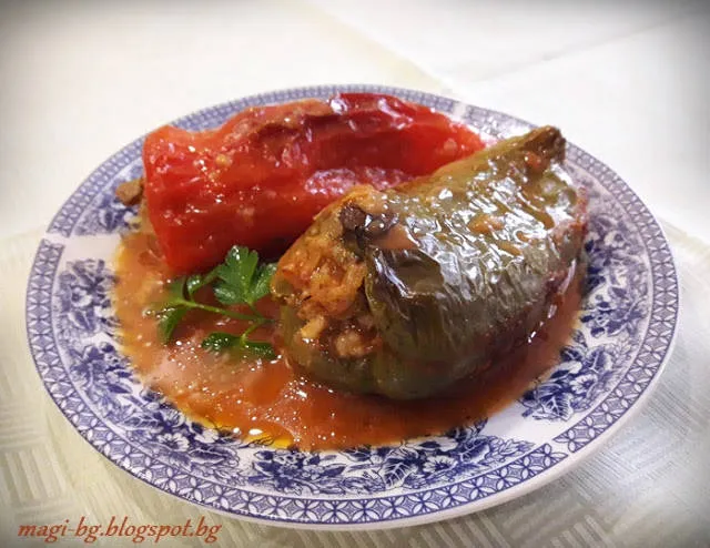 Вариант с червен сос на любимите пълнени чушки - ароматен сос с гъби