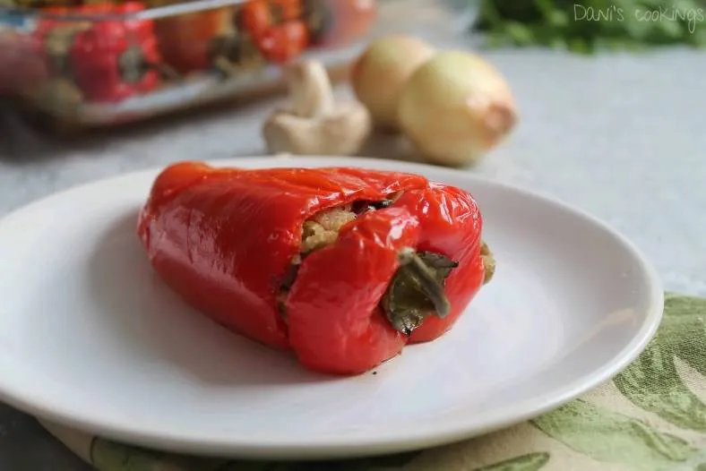 Вкусни и леки пълнени чушки с киноа, грах, гъби и моцарела