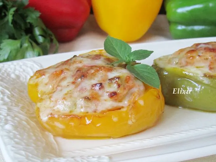 - 6 чушки (за предпочитане да са едри,за да могат да се разполовят и да станат като лодки)