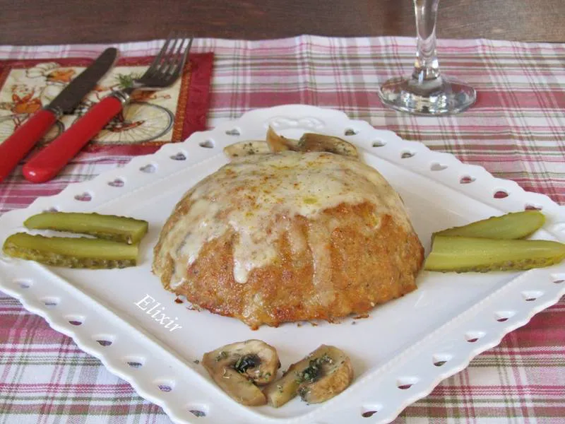 Пълнени купички от мляно месо с кисели краставички,кашкавал и гъби