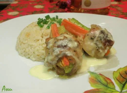 Със сос Алфредо и гарнитура ризото със шампанско и сирене Скаморца