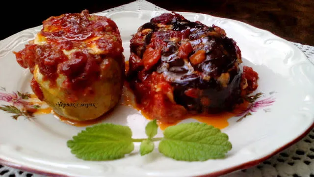 Пълнени постни патладжани и тиквички