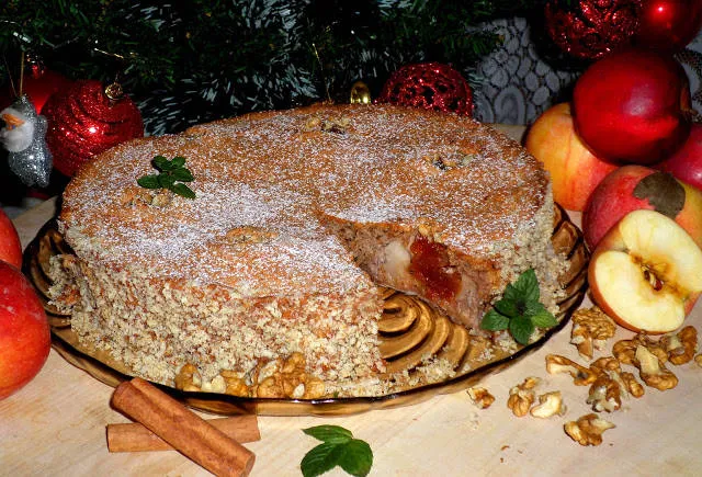Празничен сладкиш с ябълки и орехи за зимните празници
