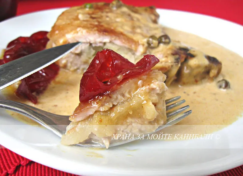 Пълнени свински котлети с ябълки и с аромат на хвойна