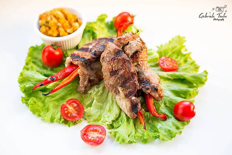 Пълнени свински рулца поднесени със зеленчуково пюре
