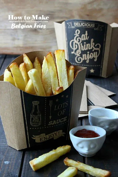 Belgian fries Тези картофки са много популярни на местата, предлагащи улична храна. Различават се от останалите с мека сърцевина и хрупкава коричка отвън.