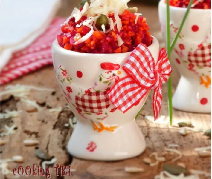 Познатата салата от червено цвекло с добавка на семена и сирена