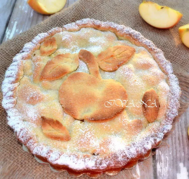 Хрупкаво маслено тесто с бадеми, ябълки и канела