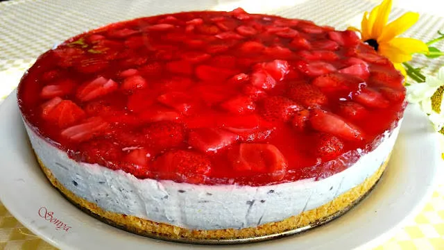 Някои наричат този сладкиш чийзкейк, но за мен чийзкейкът е с печене и без желатин.Много подходящ за любителите на лесните десерти.Може да се приготви с различни плодове - пресни, замразени или от компот.
