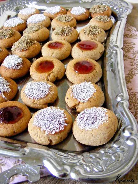 Направих ги с два пълнежа, с шоколад и смлени орехови ядки и с ягодов мармалад и поръска от кокосови стърготини. Сладките са страхотни! Не е нужно да отлежават, за да омекнат, просто не трябва да ги препичате, както впрочем и меденките. Достатъчни са 5-6 мин и са готови. Остават мекички и вкусни - и сладките, и меденките.