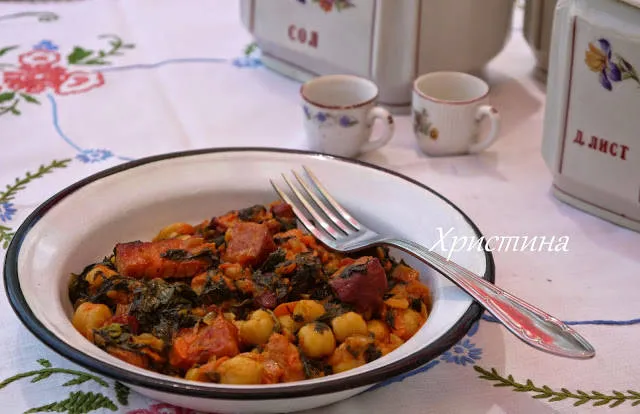 Яхния от нахут, пушен бекон и лапад