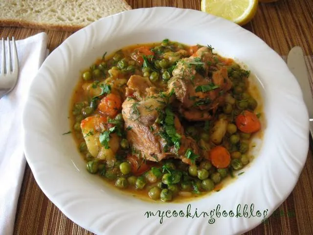 Яхния с пилешко и грах