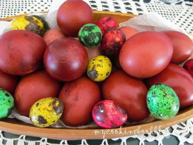 Яйца боядисани с корени от брош
