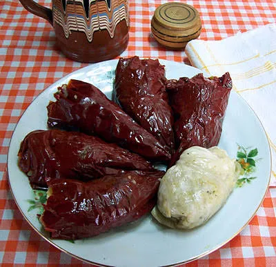 Раки - пълнени сухи пиперки с булгур и кисело зеле по капански