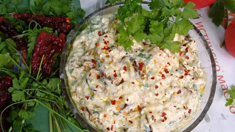 Тази разядка е свеж вариант на стандартните тиквички с кисело мляко с малко добавки от мен. Спечени тиквички е по-диетично