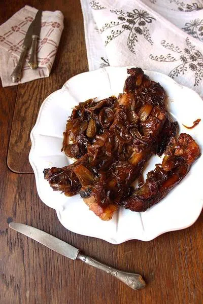 Ребърца с карамелизиран лук в Крок-пот