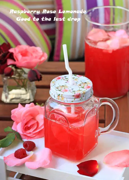 Сервирайте лимонадата охладена с бучки лед и розови листенца
