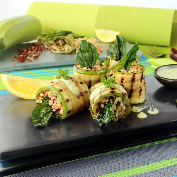 Рулца от гриловани тиквички с кускус и киноа