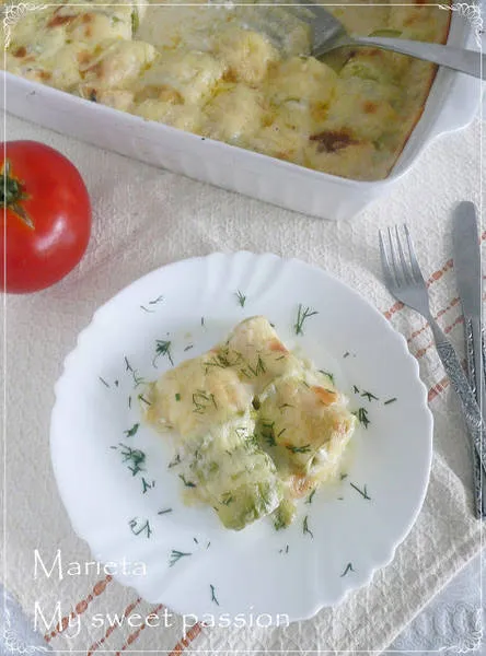 Сервирайте ястието, поръсено с пресен копър. Еднакво вкусно е както топло, така и студено.