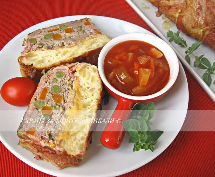 - ~ 300 г пушен бекон, нарязан на тънки слайсове
