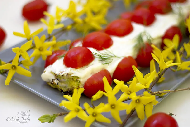 Вкусно, лесно и бързо руло с бла от тиквички, крем от сирене и за разкош - чери домати.