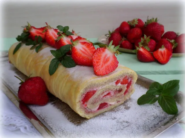 Преди сервиране поръсете обилно с пудра захар и украсете отгоре с останалите ягоди.