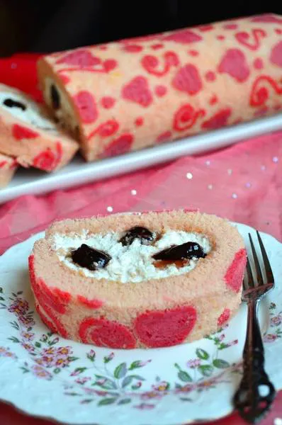 - Загрейте фурната до 170°С. Поставете яйцата и захарта в купа и ги разбийте, докато се превърнат в много лек и пухкав крем. Маслото се прибавя към яйцата на тънка струйка и всичко се разбърква леко. Брашното се пресява върху яйцата, прибавят се и портокаловите кори и всичко се разбърква внимателно. Вземете тепсията с декорацията от хладилника и изсипете тестото върху хартията. Загладете и разпределете тестото с шпатула равномерно. Печете рулото за 10 минути. Обърнете готовата платка върху пергаментова хартия, след това отлепете хартията от долната страна на платката. Обърнете отново блата, така че декорацията да остане от външната страна. Навийте на рулото за кратко, докато леко се поохлади. Напълнете рулото с крема, завийте го в хартията и го приберете в хладилника за два часа.
